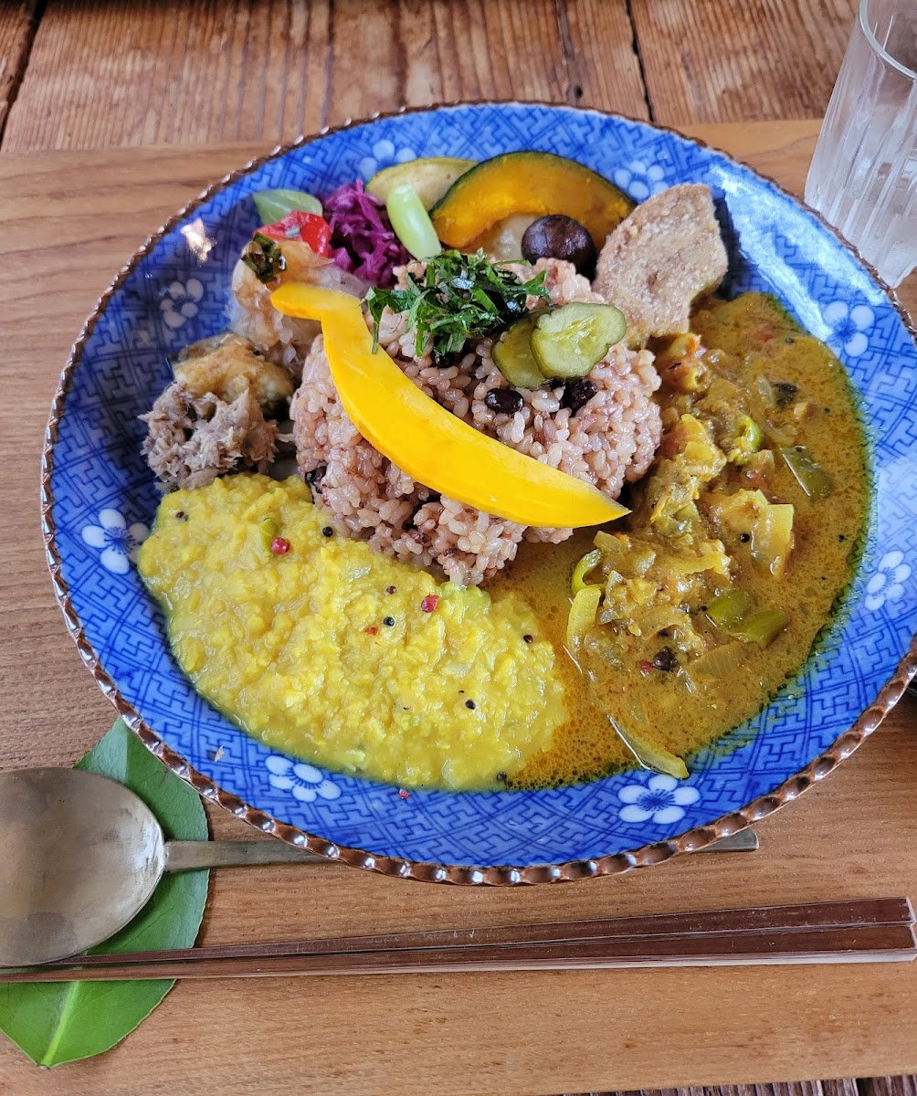 A lunch plate priced at a reasonable ¥1,650 offers a delightful assortment, including a tomato and okra coconut curry and a chickpea curry topped with an array of healthy side dishes. The organic vibe of the cafe extends to its dessert menu; try the coconut milk pudding or refreshing matcha vegan ice cream for a guilt-free sweet ending.